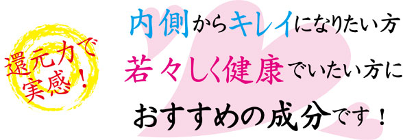 水素は、この「活性酸素」を還元し、無害な水に変えてくれる働きがあり、数ある美容成分の中でも強力な還元力を誇ります。また、悪い物質を外へ出してくれたり、乱れた身体のリズムを元に戻してくれるともいわれています。